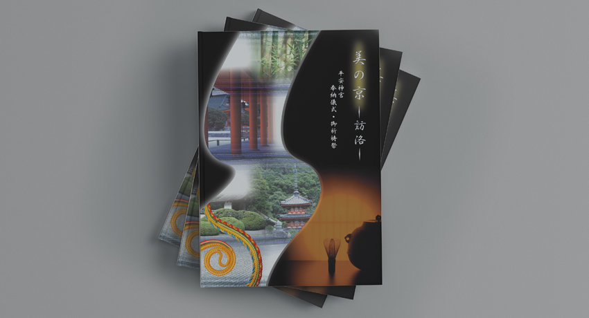 京都らしい神社境内の情景をメインにそれらをフェードさせ画像合成することで幻想的な印象となるようデザインしています。