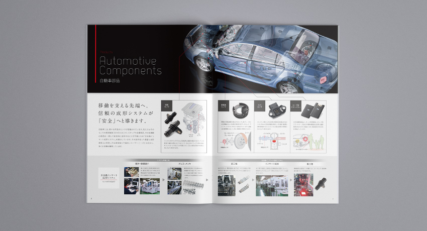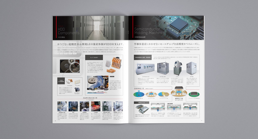 メーカー様の会社案内では特に重要なコンテンツが、主となる製品力をいかに明解且つ詳細に感じてもらえるかだと思います。