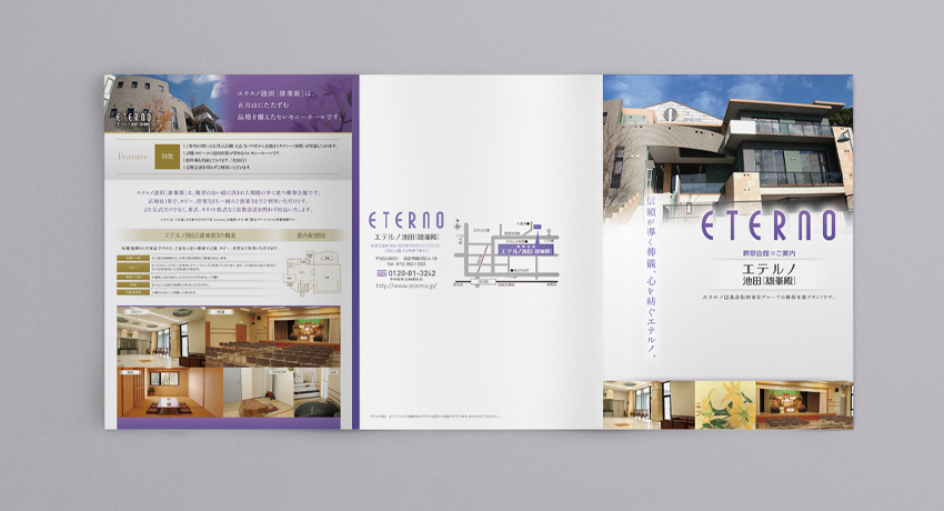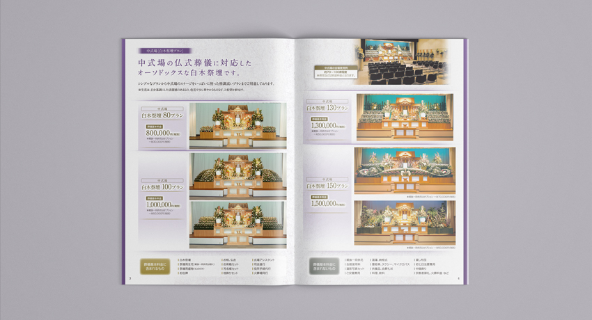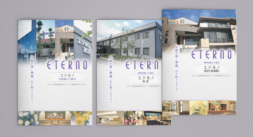 主に関西にて展開されている葬祭サービスグループのパンフレットデザインです。