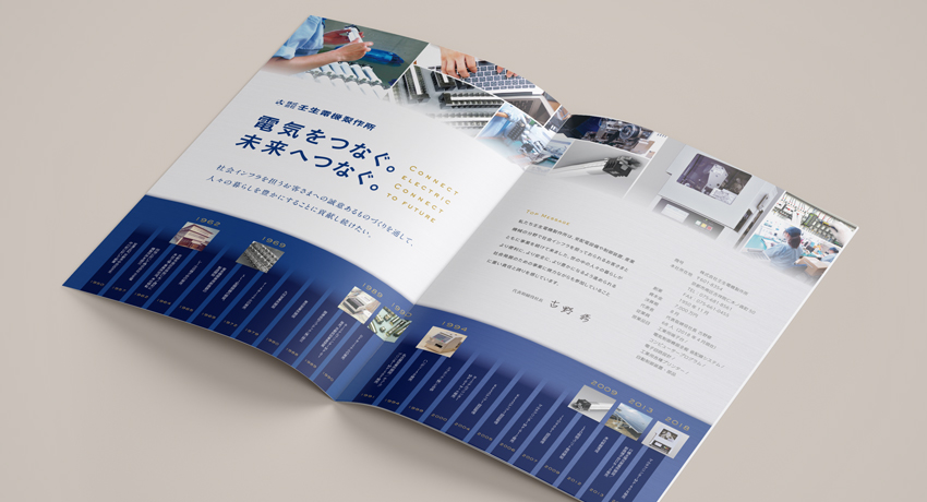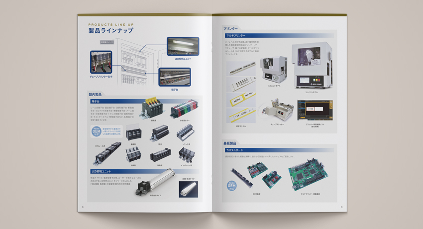 電気製品にまつわる部品および照明や製造関連の製品等を幅広く開発、供給している企業様の会社案内のパンフレットです。